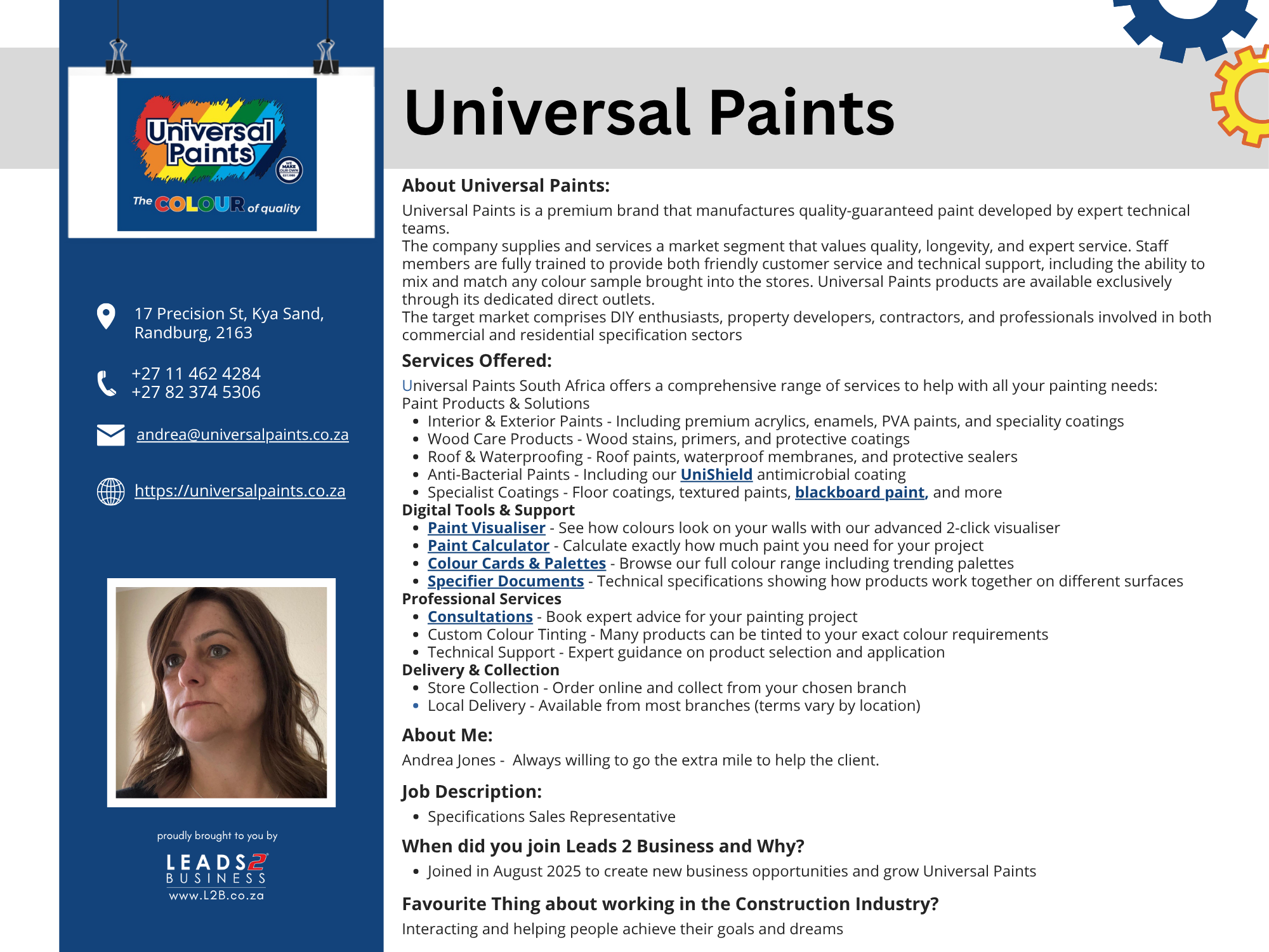 Read about Who’s Who in the Industry: A family business established in 1982, acquired by Medu Capital in 2016. Universal Paints has a rich heritage encompassing years of experience in manufacturing and distribution of consistent quality guaranteed product ranges through a network of direct outlets.