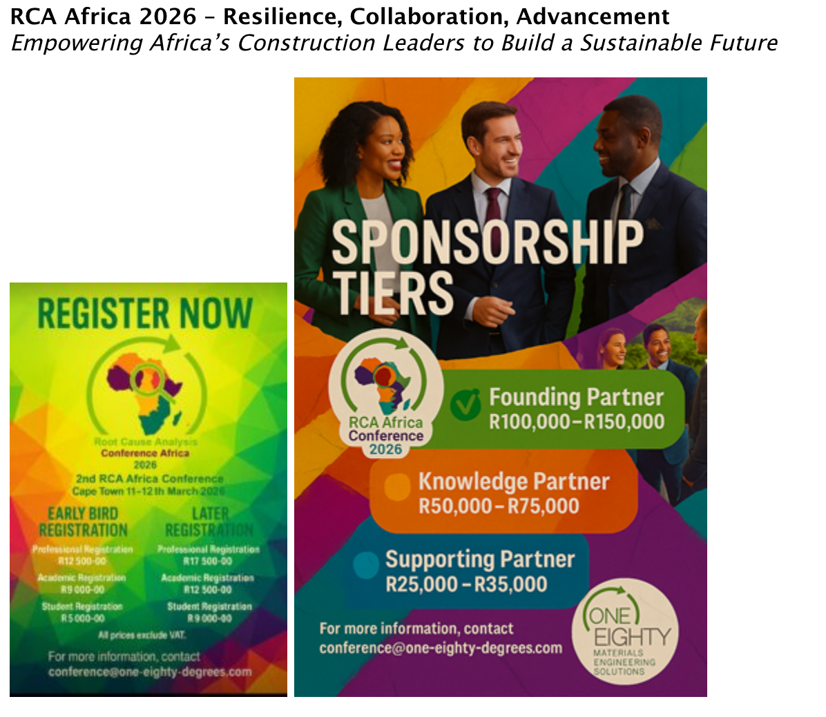 We invite you to be part of this transformative journey at the 2nd RCA Africa Conference, where decision-makers, innovators, and thought leaders across the built environment, across Africa, will converge to share insights, inspire action, and shape a resilient future for our sector.
